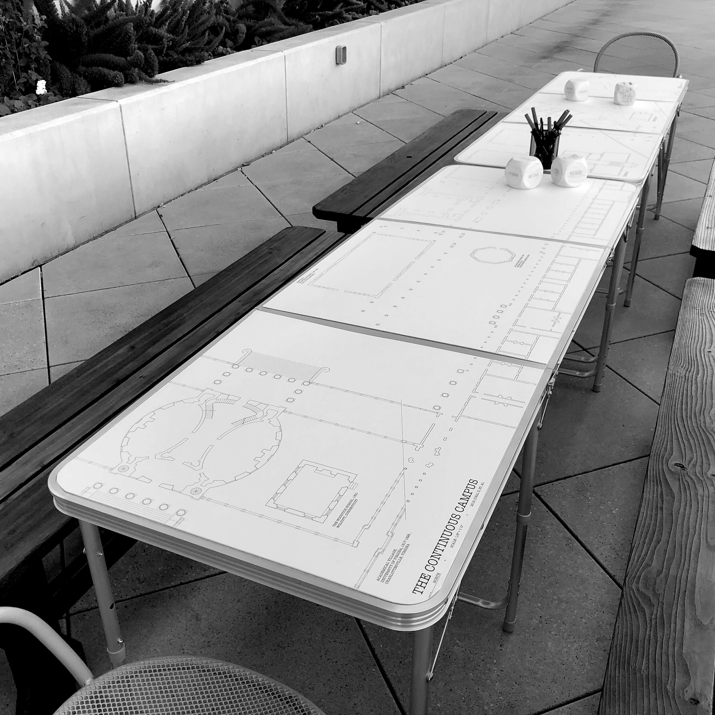 As an experiment in the co-production and sharing of knowledge within a designed framework, The Continuous Campus, is a drawing [game, engagement, discussion]. The project asks participants to consider the provocation of the title, then draw, collaborate, discuss, and debate the potentials for the exchange of knowledge in alternative and/or more public spaces.